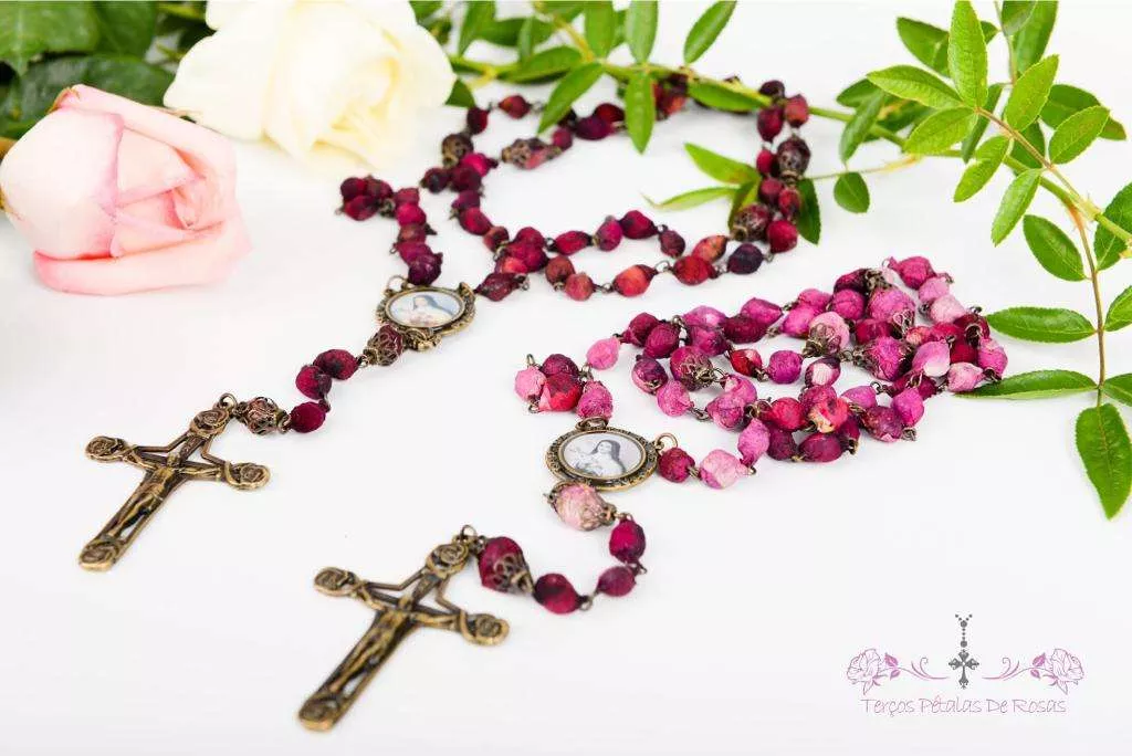 Com a graça de Deus, fui privilegiada com o conhecimento da arte monástica de transformar as Pétalas de Rosas em terços. Após algumas experiências espirituais, recebi como missão o resgate dessa tradição de elaborar os terços ORIGINAIS 100% de Pétalas de Rosas.